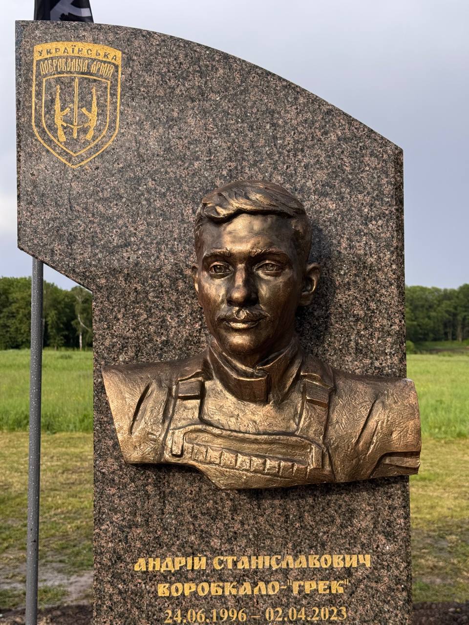 На світлині – горельєф Андрія Воробкала-“Грека” скульптора Ігоря Семака. Холодний Яр, Меморіал козакам-добровольцям, 18 травня 2025 р. Світлина Юрія Дереневського.